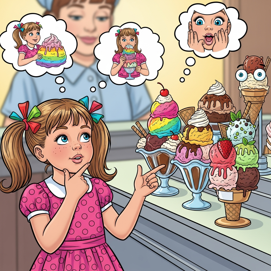 Zum Beispiel: „Vater hat ein Eis spendiert, was wähle ich denn jetzt?“
